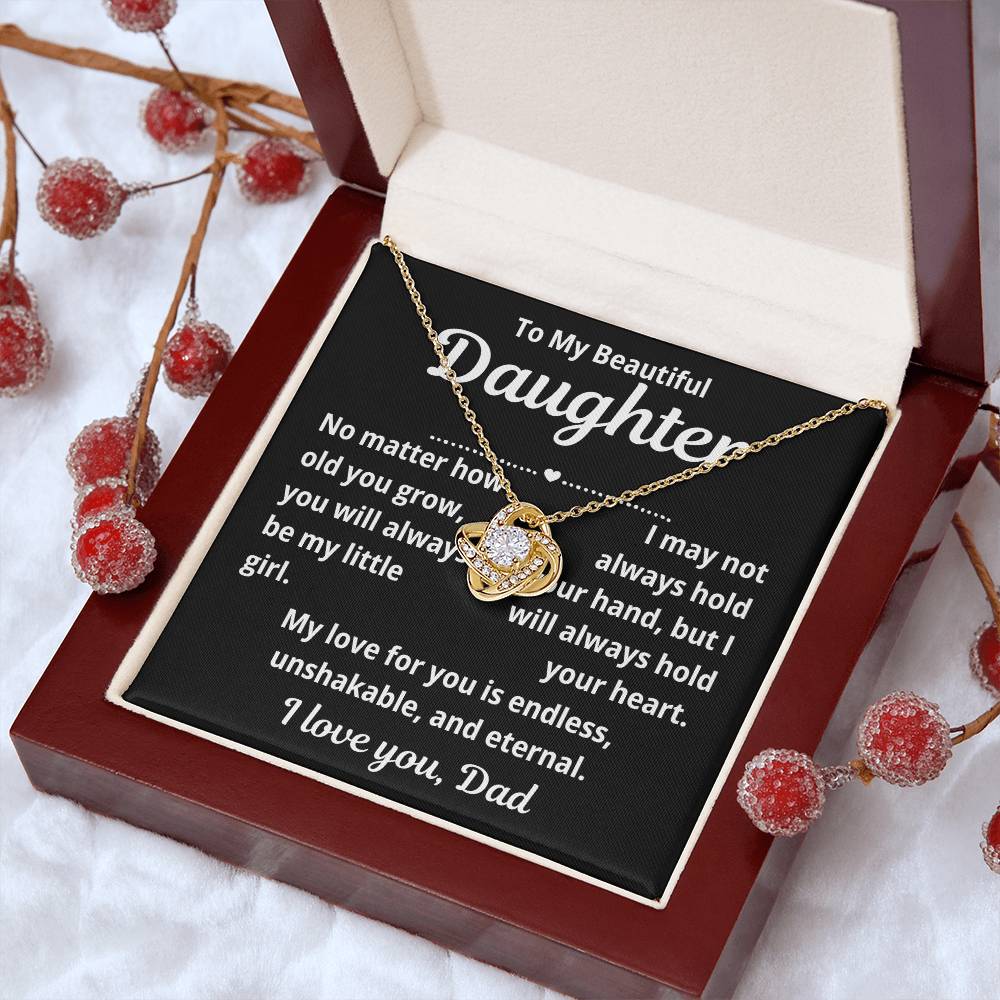 To Daughter From Dad " No Matter How Old You Grow.." Love Knot Necklace