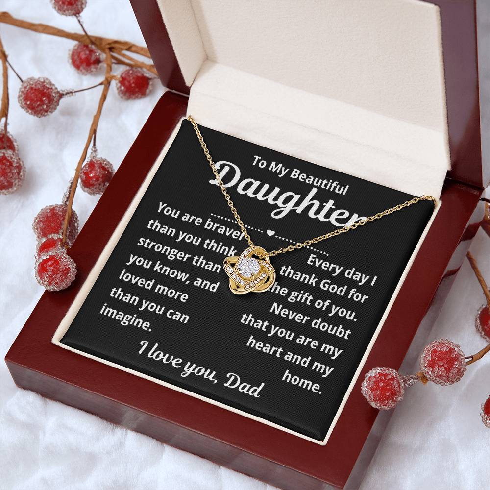 To Daughter From Dad "You Are Braver Than You Think.." Love Knot Necklace